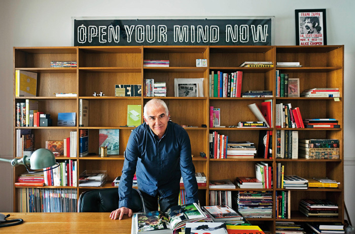 Hace poco que rebasó la barrera de los 60 y se puede decir que el de Manuel Estrada es uno de los estudios más reconocidos dentro del panorama del diseño gráfico español. Sin ir más lejos, en 2014 recibió el Good Design Award, premio que otorga el Museo Athenaeum de Arquitectura y Diseño de Chicago, por sus portadas para Alianza Editorial. Trabajos corporativos para la Fundación Repsol o proyectos completos de marca, señalética y espacios para el Museo del Traje o el Museo del Ejército, son algunos ejemplos de lo que este diseñador madrileño crea cada día en su estudio, siempre a partir de palabras, dibujos y conceptos, junto al resto de profesionales que le acompañan.
