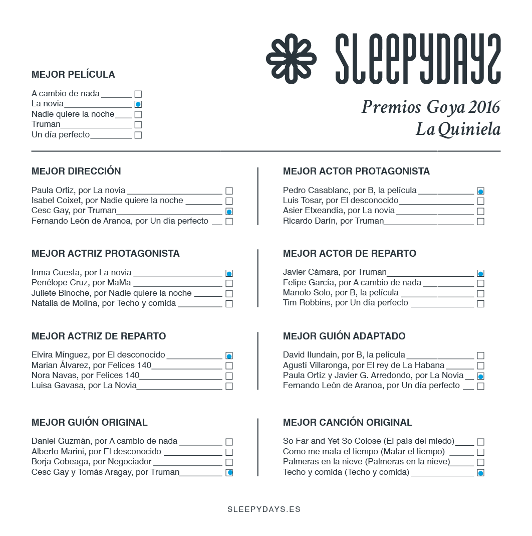 Los Goya 2016 ¡Haz tu quiniela, valiente!