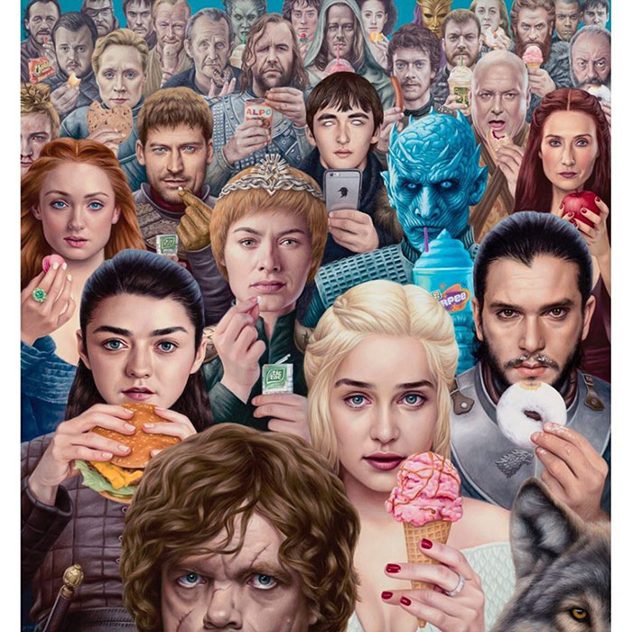 Humor negro a tope con un estilo clásico basado en composiciones del renacimiento… ¿Tenemos que añadir algo más o podemos tirarle ya los trastos abiertamente a Alex Gross?