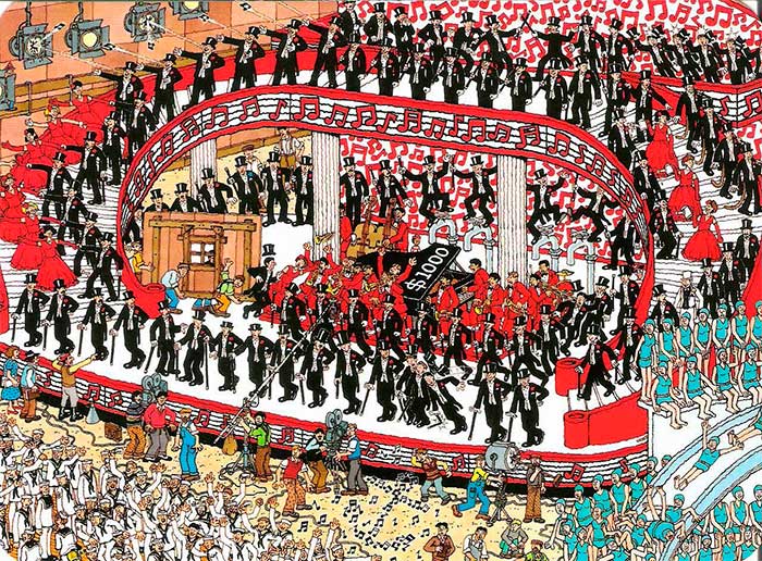 Aunque la mayoría de los artistas son reacios a hablar de sus obras favoritas, Handford, reveló la escena de Wally que más le gusta: «A Tremendous Song and Dance», basada en un famoso musical que se puede encontrar en el libro de 1993 ¿Dónde está Wally en Hollywood? La asombrosa representación visual está repleta de cientos de personajes, la mayoría con disfraces deslumbrantes que bien podrían haber salido directamente de un musical de Esther Williams de los años 40.