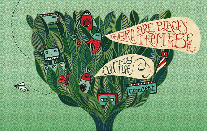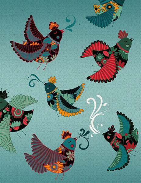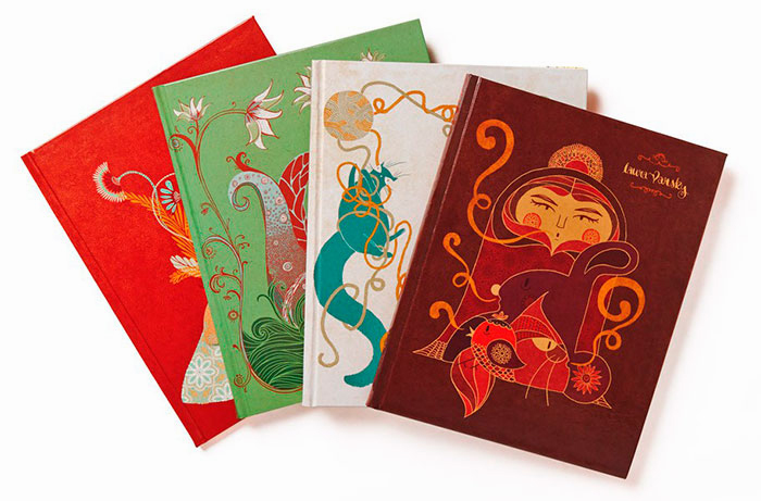 Realizó estos diseños basándose en relatos épicos y cuentos populares, recuerdos de sueños y universos mágicos que provienen de su imaginación, de donde se nutre principalmente, y de donde fluye su estilo e inspiración y que le han servido para formar su característica y colorida señal de identidad. También cuenta con el apoyo de William Morris, creador del movimiento «arts and crafts», y de Gustav klimpt, como referentes y pilares en muchos de sus trabajos.